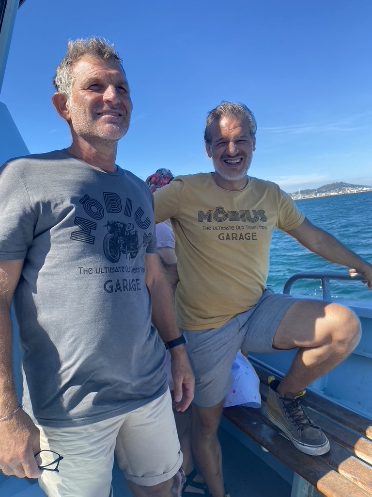 - Impression logo noir représentant une des créations motos de Sébastien Beaupère pour MÖBIUS Garage, la BMW VICTORIA
